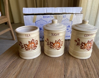 Vintage tea coffee and sugar canister set. Maybe you would like to learn more about one of these? Check spelling or type a new query. We did not find results for: