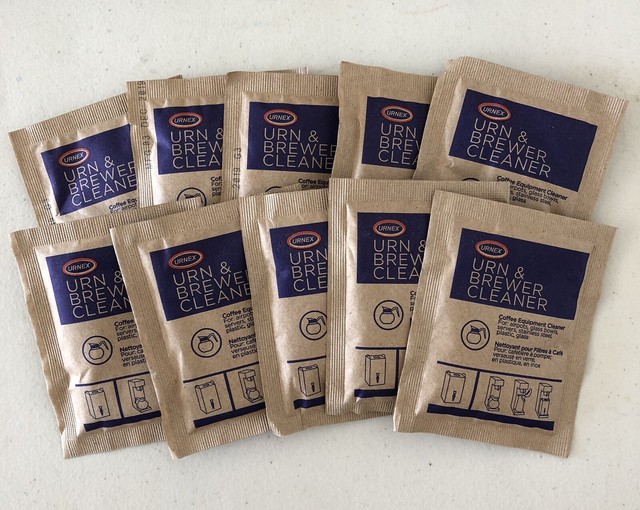 Urnex® coffee machine descaling and cleaning kit.